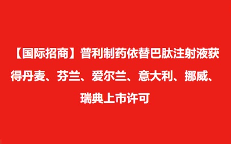 【国际招商】普利制药依替巴肽注射液获得丹麦、芬兰、爱尔兰、意大利、挪威、瑞典上市许可