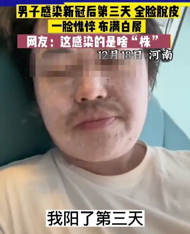 还有人中了新冠感染之皮皮株后,脸部成了这样:河南一男子感染新冠后第三天,全脸脱皮,一脸憔悴,布满白屑!
